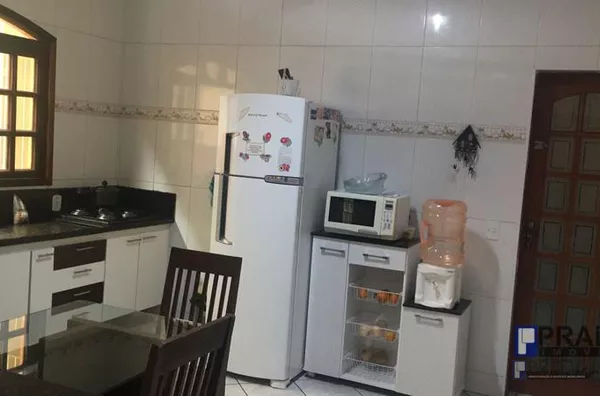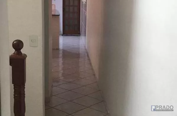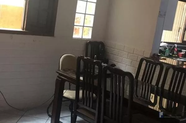 Belo sobrado com cômodos grandes, quintal e área de churrasqueira, toda em piso frio porta e janela de madeira, garagem para 2 veículos e portão automático.